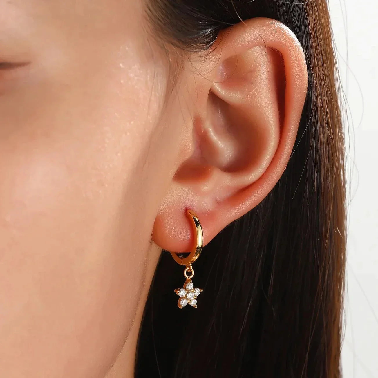 Orecchino a cerchio con stella di cristallo