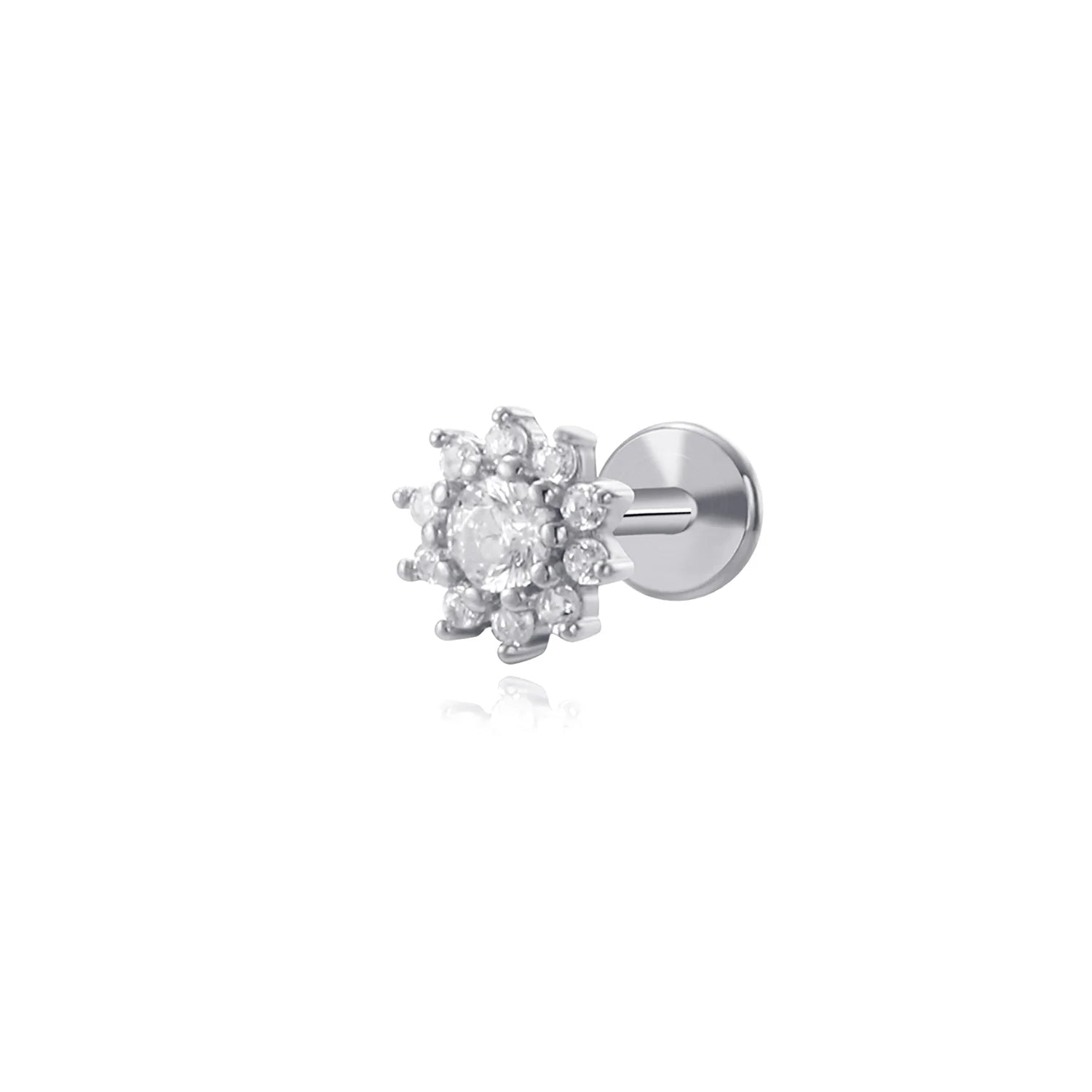 Orecchino a bottone con diamante e girasole a fondo piatto (18G)