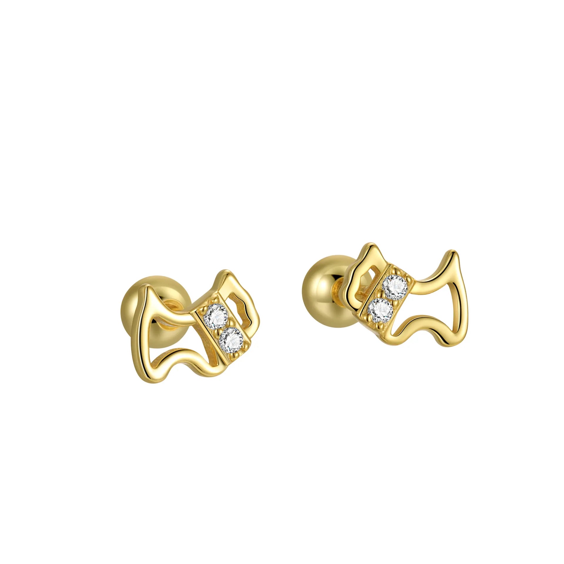 Orecchini a bottone con barbell a forma di cagnolino con sciarpa (20G)