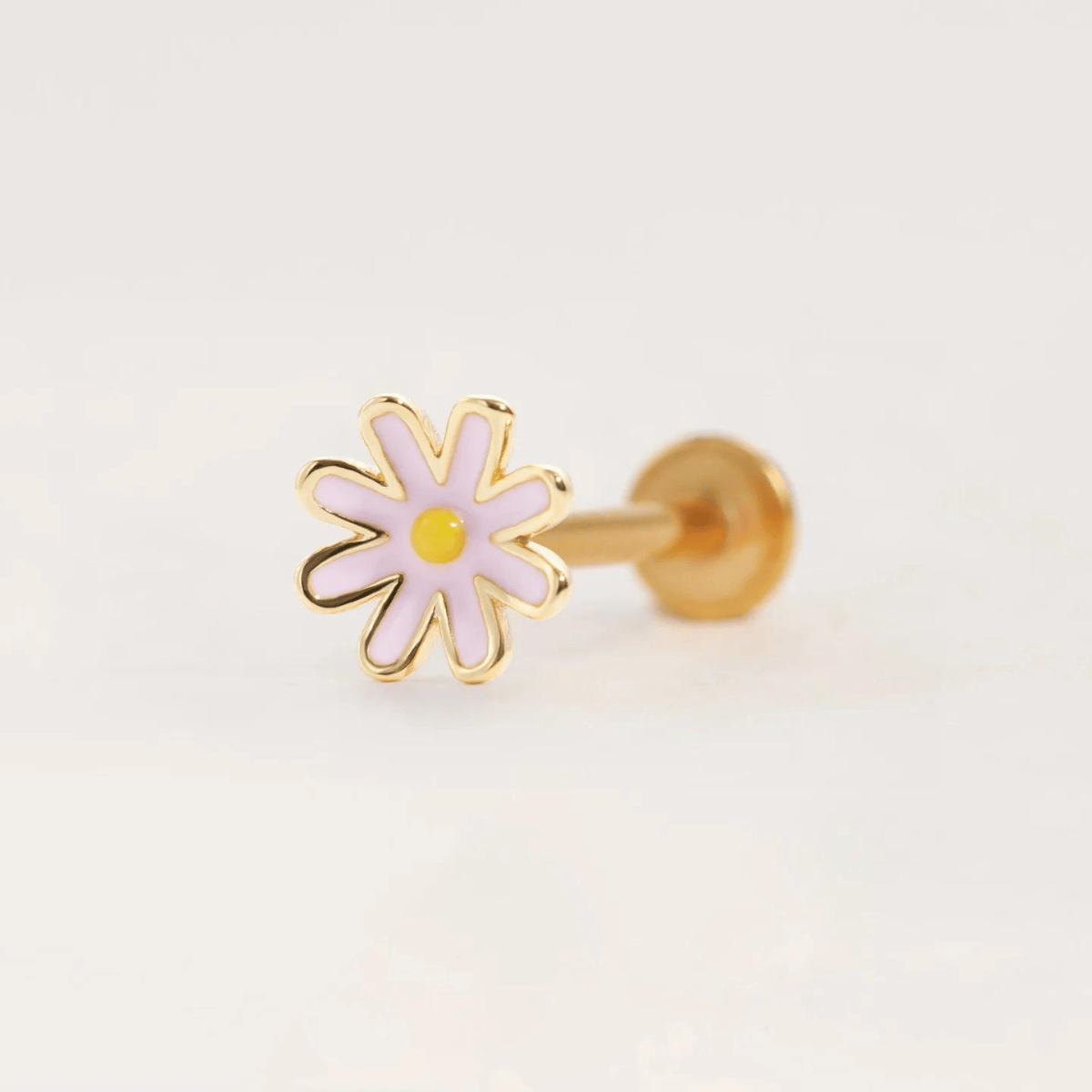 Piercing a perno con fiore di margherita rosa e schiena piatta (16G)