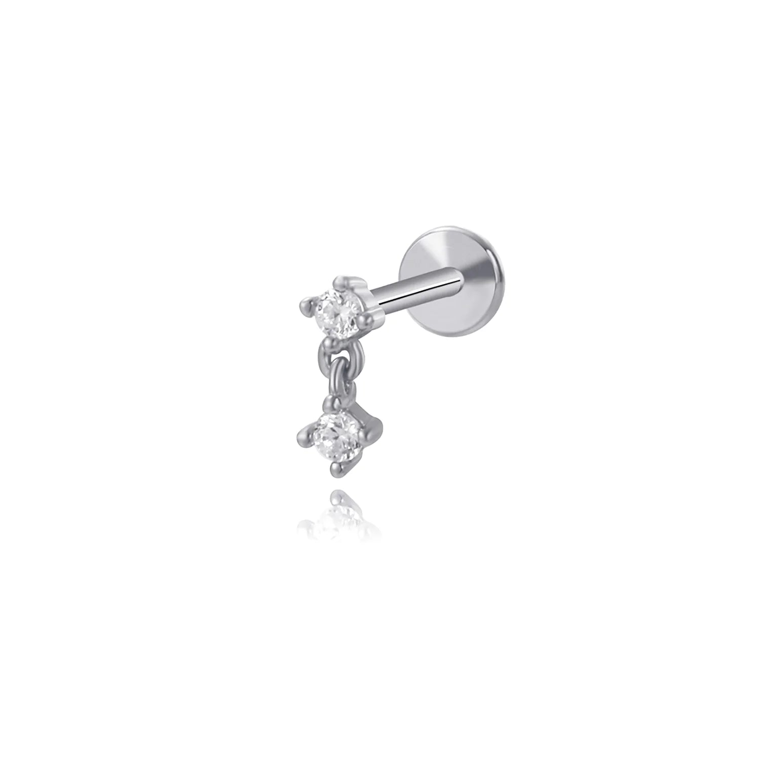 Mini Dangle Duo CZ Orecchini a bottone con retro piatto (18G)