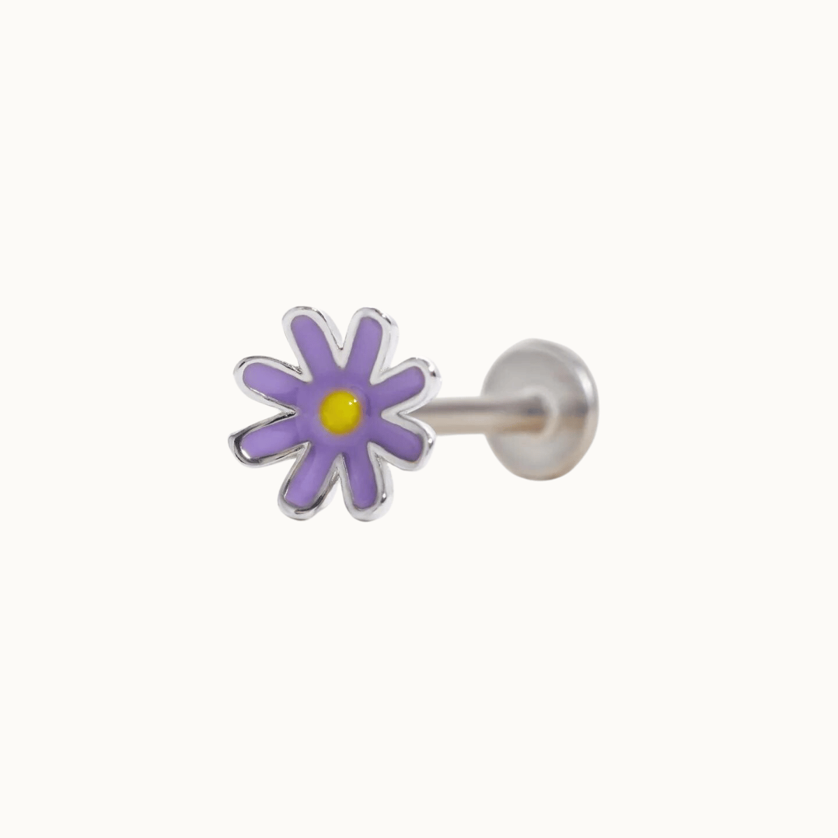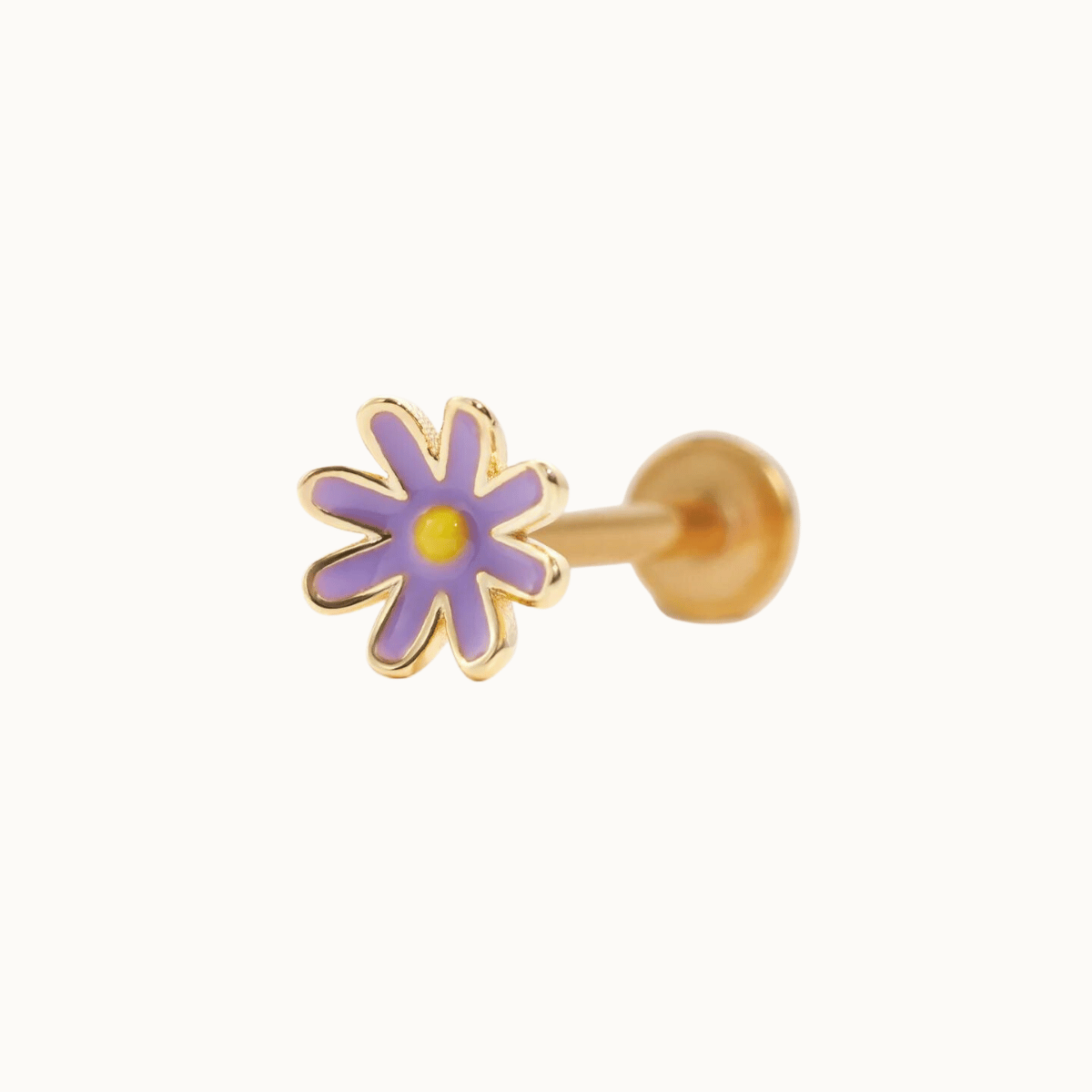 Piercing a perno con fiore di margherita viola e schiena piatta (16G)