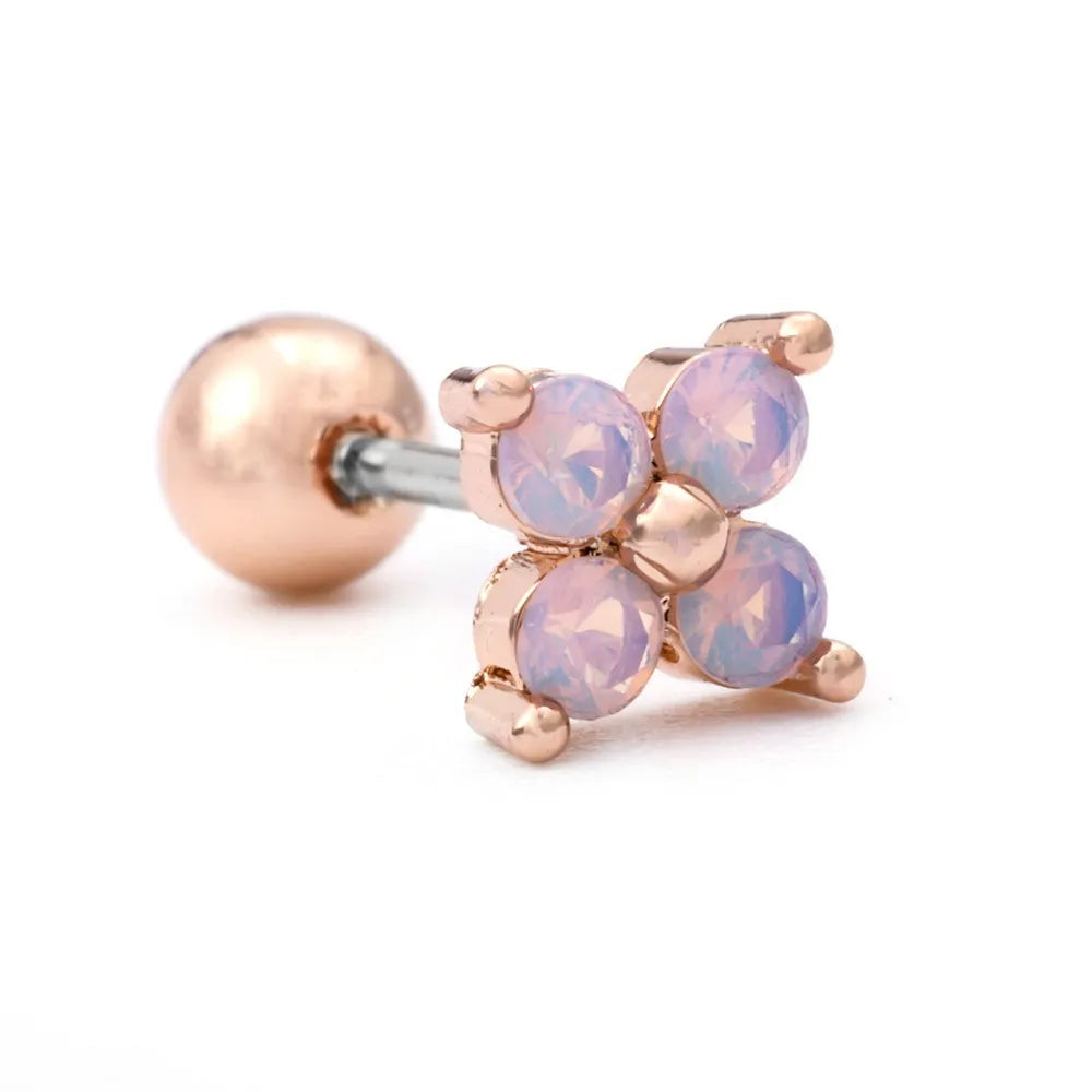 Piercing a barbell con quadrifoglio in zirconia cubica rosa (20G)