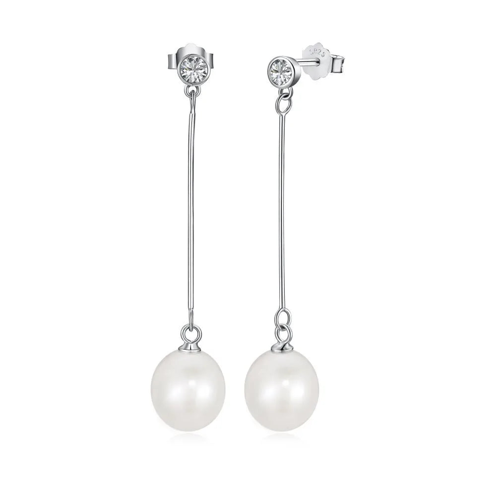 Orecchini pendenti con perle d'acqua dolce a catena lunga