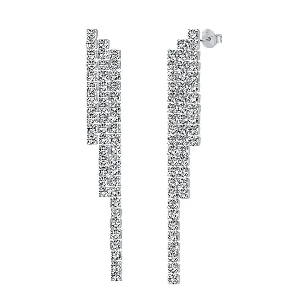 Gli orecchini pendenti con nappe pendenti Luxe Diamond incarnano opulenza e glamour con il loro design sontuoso e la loro scintillante accattivante. Questi orecchini presentano una straordinaria gamma di diamanti scintillanti meticolosamente disposti per creare uno squisito effetto a nappe, che trasuda un senso di lusso e raffinatezza.