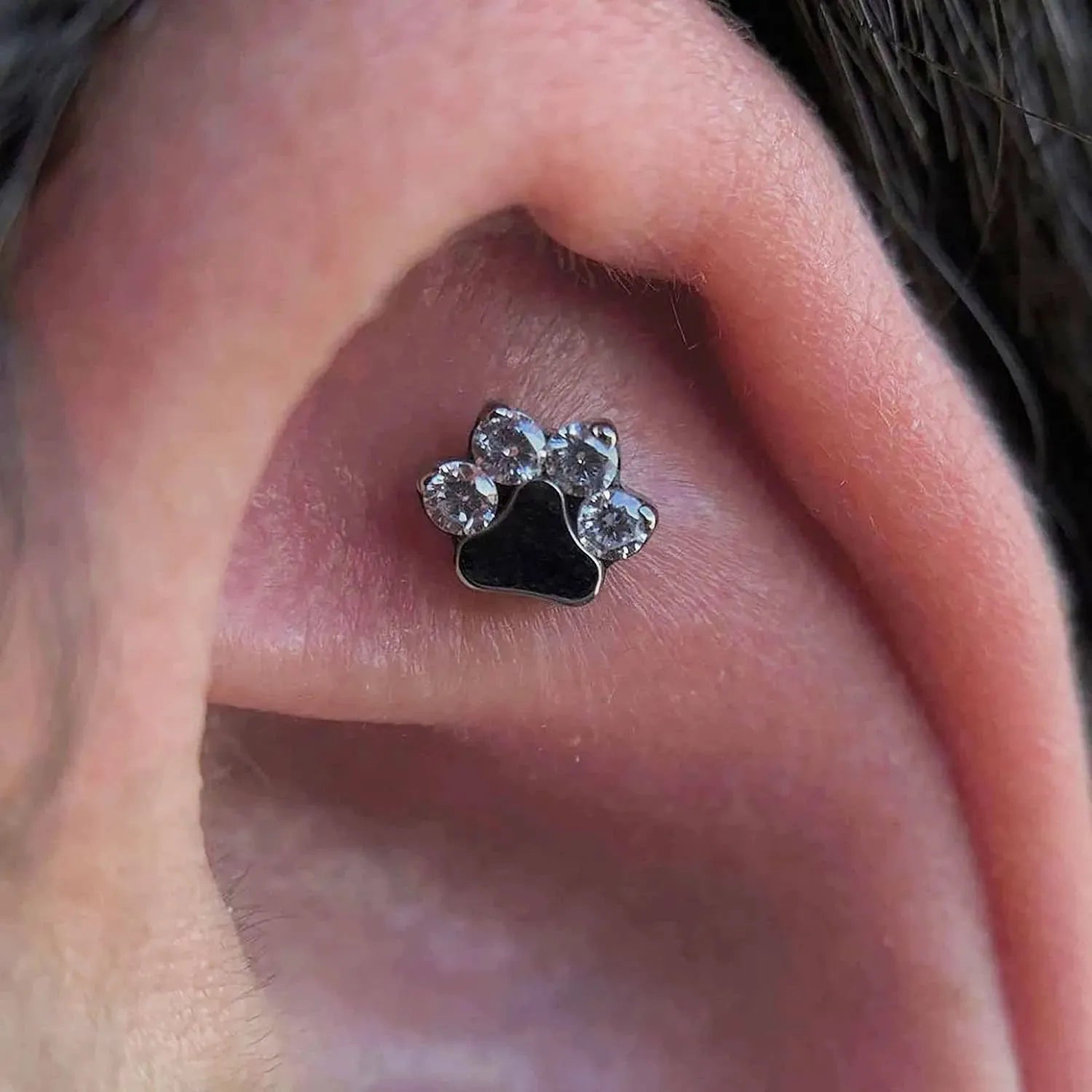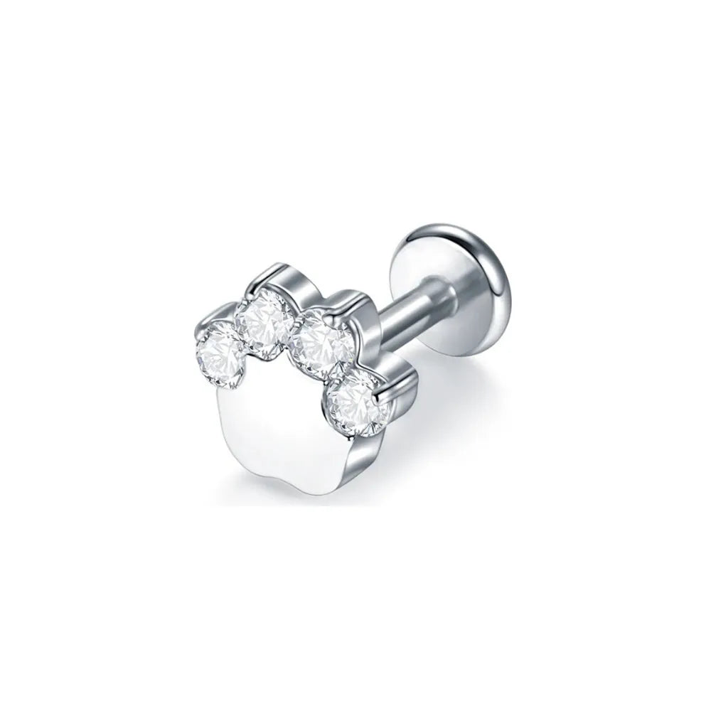 Orecchino posteriore piatto con zampa di diamante bianco in titanio di grado implantare