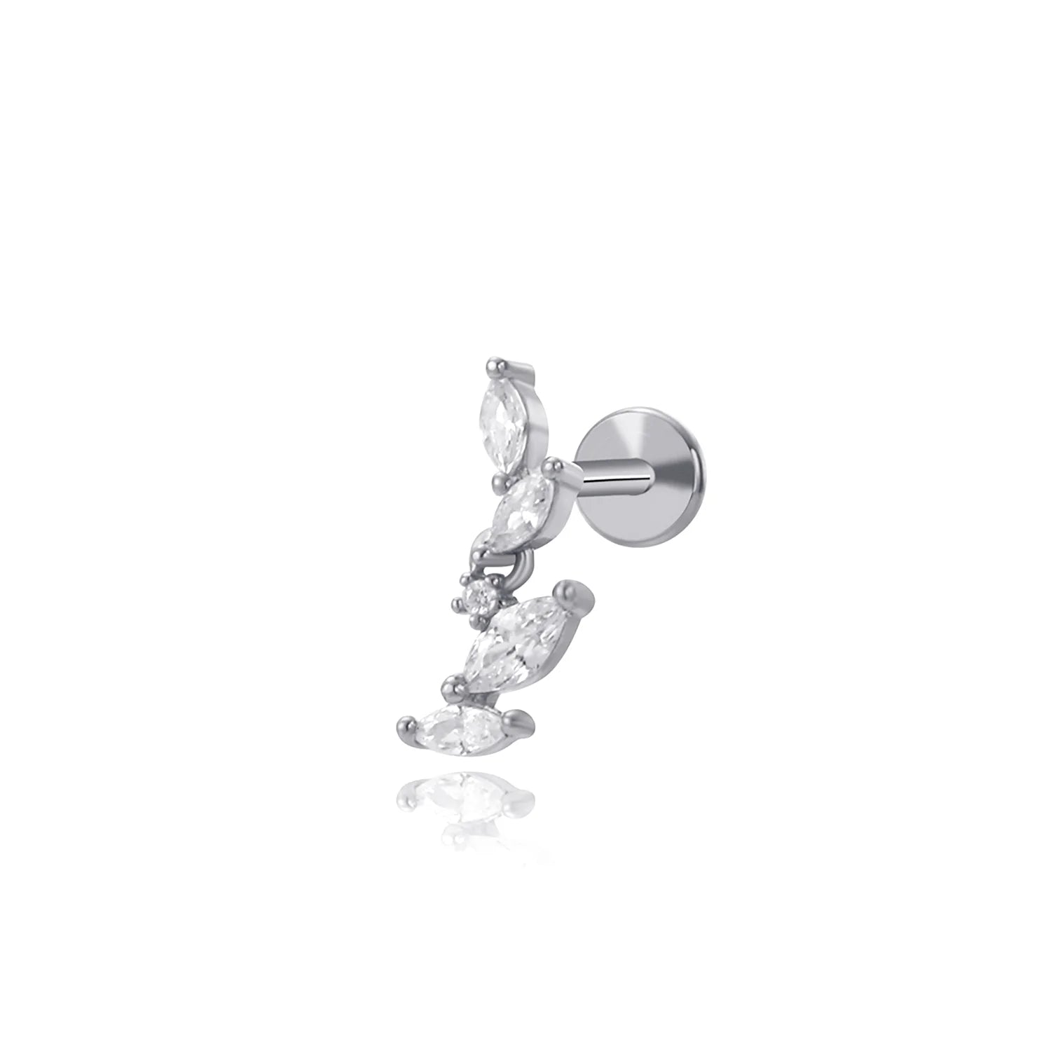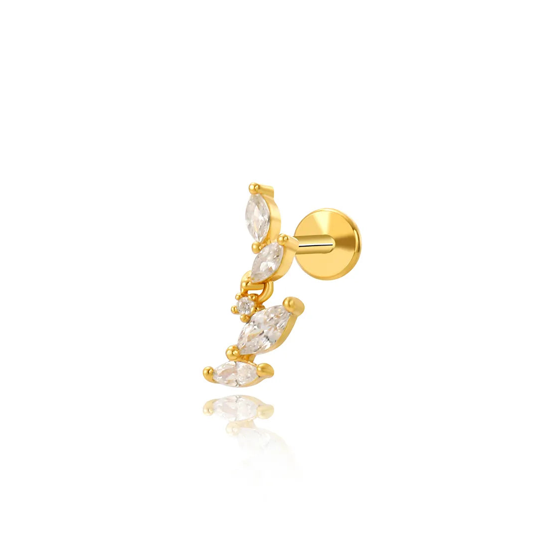 Orecchino a forma di foglia rampicante in cristallo con parte posteriore piatta (18G)