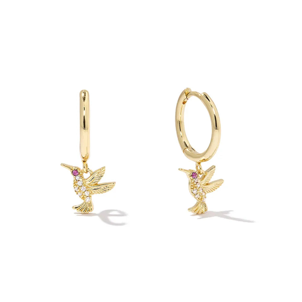 ORECCHINI A CERCHIO CON UCCELLO E PIETRE PREZIOSE