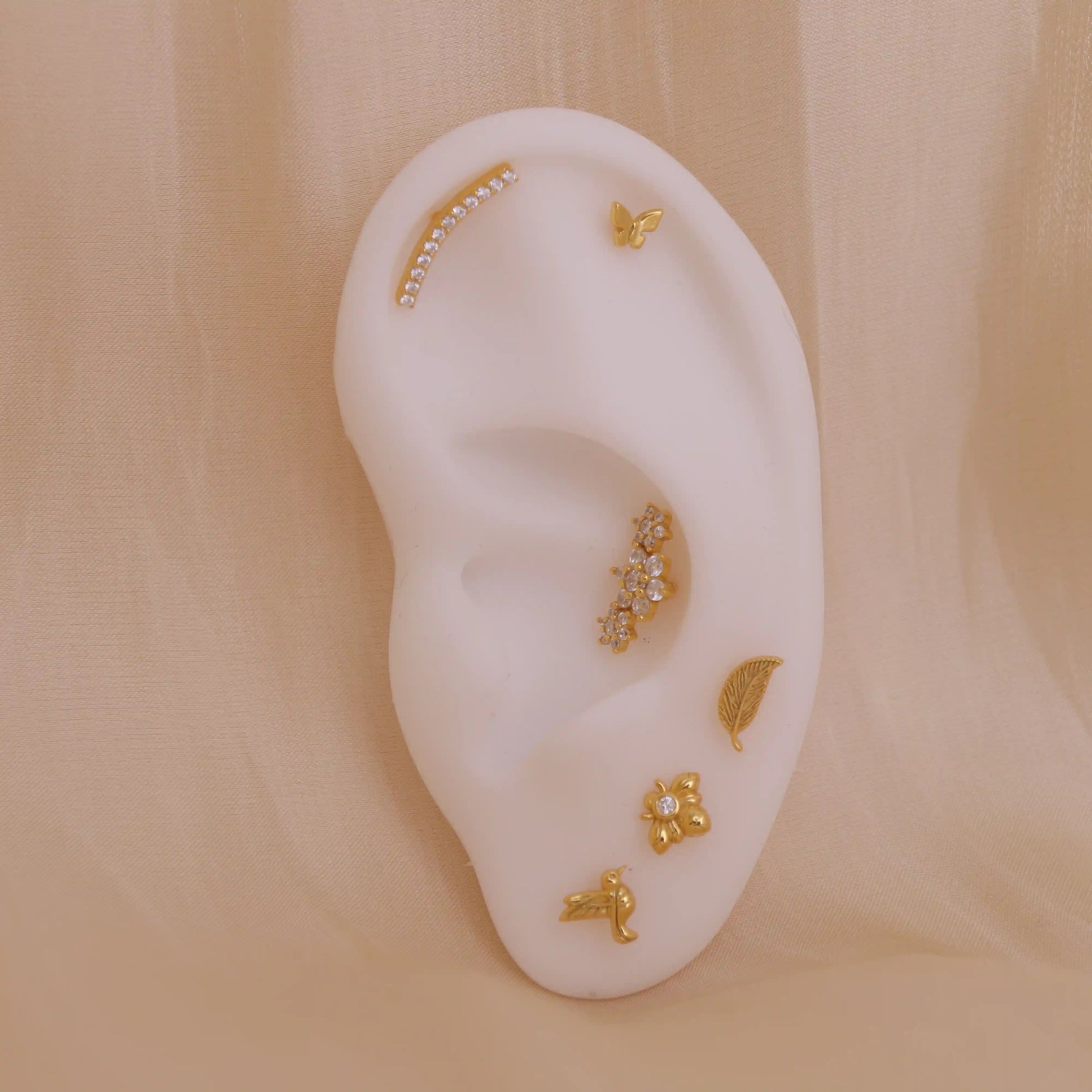 Mini orecchini a bottone con farfalla e parte posteriore piatta (18G)