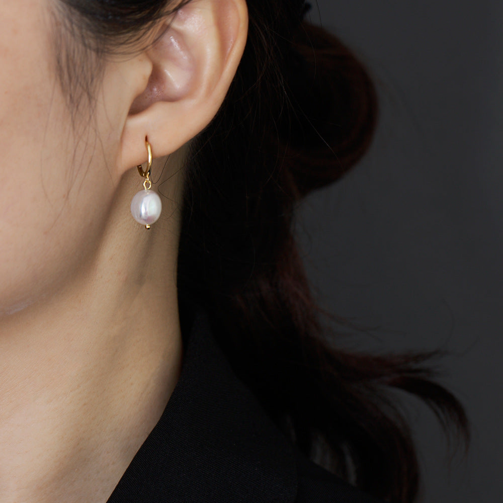 Orecchini a cerchio minimal con perle d'acqua dolce