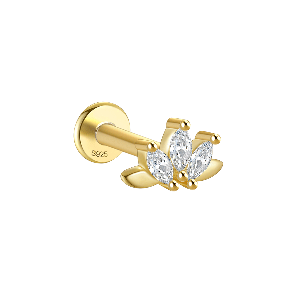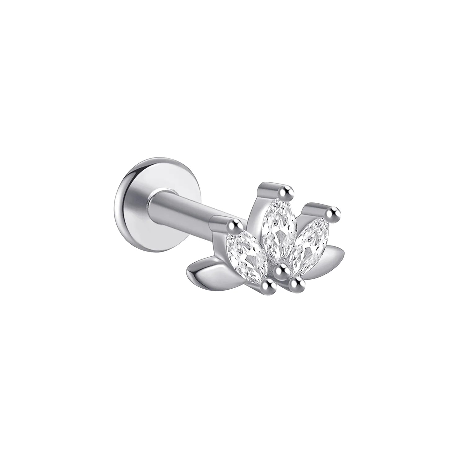 Piercing a perno con parte posteriore piatta e gemma bianca a tre petali (16G)